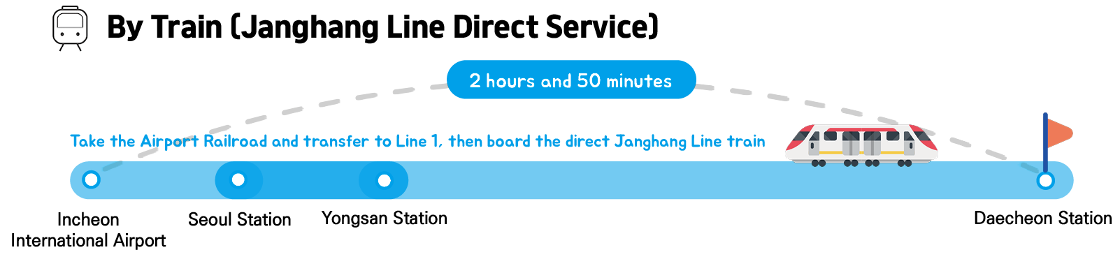 - From Seoul to Daecheon (Approximately. 2hr. and 20min.)