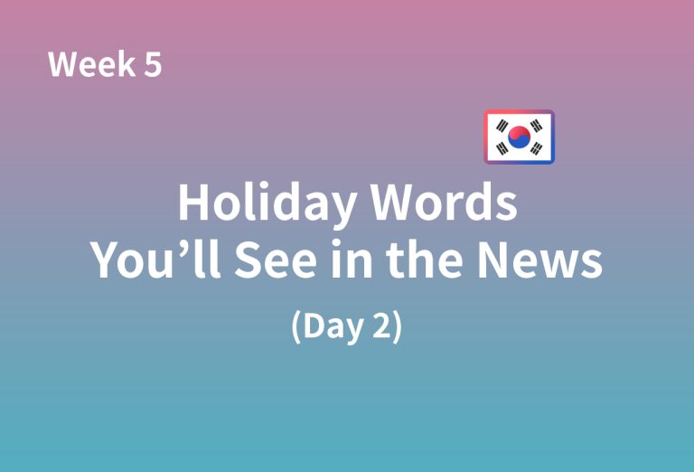 ✔ Check out Day 1 first for the full context! 👇 Step 1: Vocabulary & Grammar Study 1️⃣ (Cham-ta) Meaning: To endure or bear a difficult or uncomfortable situation. [Examples] 2️⃣ (Suri-hada) Meaning: To repair or fix something broken or worn out. [Examples] 3️⃣ (Miruda) Meaning: To postpone or delay a task until a later … Continue reading Inside Korea: Holiday Words You’ll See in the News