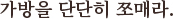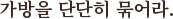 (Ga-bang-eul dan-dan-hi jjo-mae-ra.)