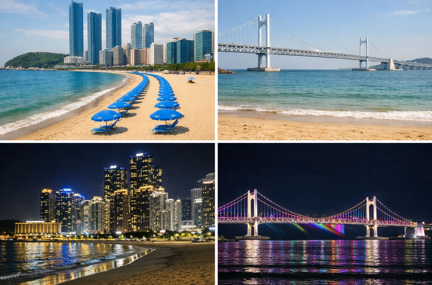 - Busan Metropolitan City: South Korea’s representative maritime city. Haeundae Beach and Gwangan Bridge are very famous.