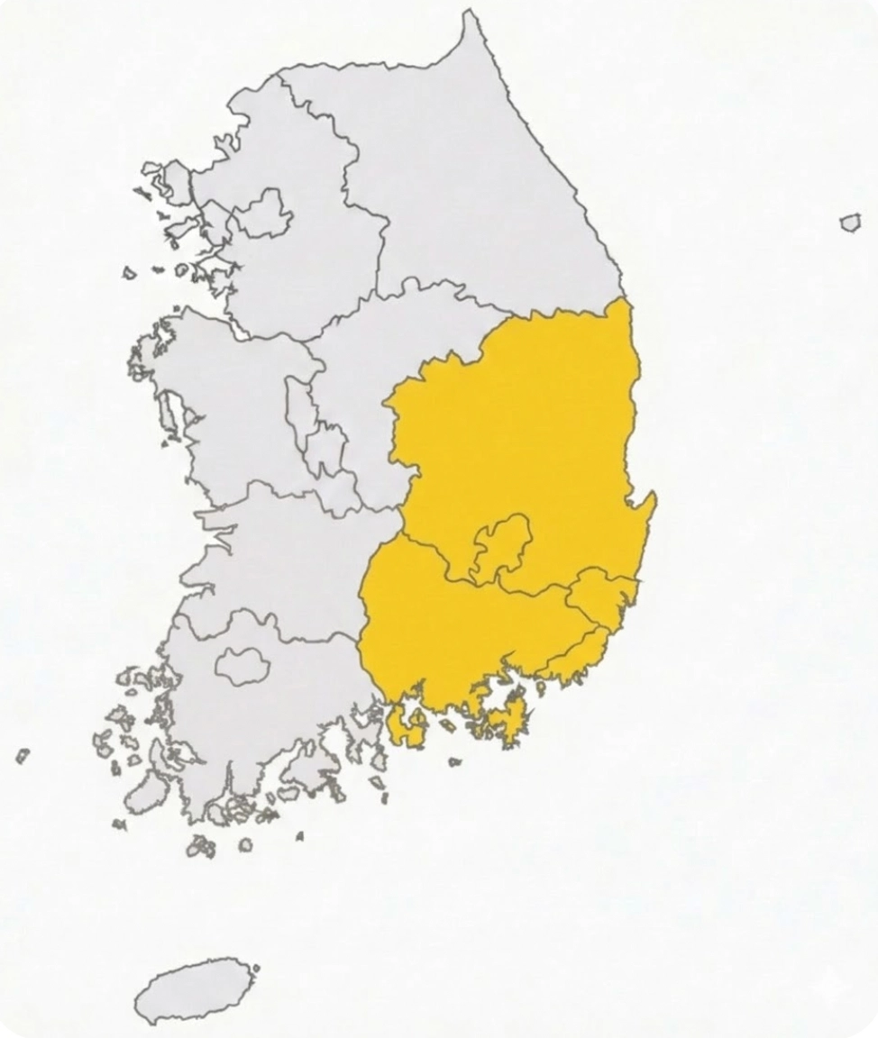 Gyeongsang-do is located in the southeastern region of South Korea. It is situated in the southeast of the Korean Peninsula, with its eastern side bordering the East Sea. Gyeongsang-do is divided into two provinces: Gyeongsangbuk-do and Gyeongsangnam-do. Additionally, Busan, Daegu, and Ulsan Metropolitan Cities are also part of the Gyeongsang region.