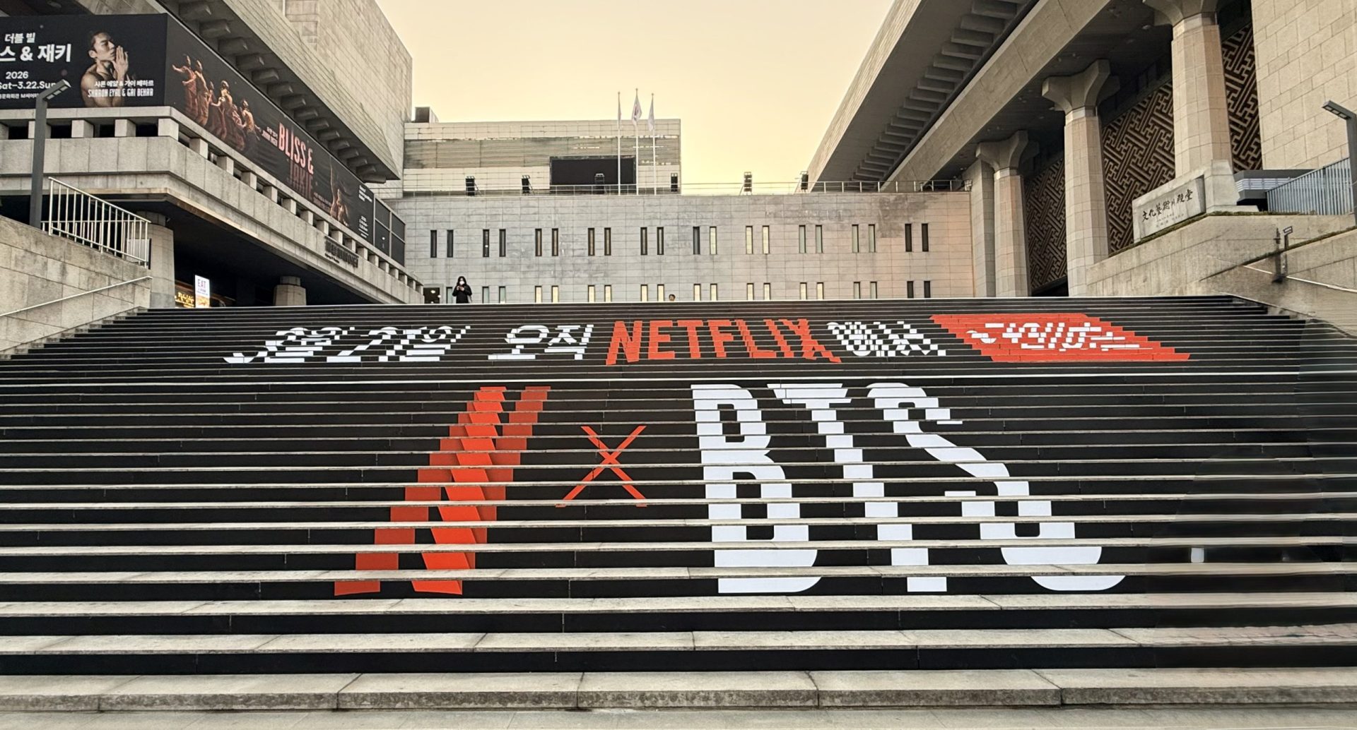 KT Building & Sejong Center: Not only the exterior walls and media facade of the KT Building, but also the entire grand staircase of the Sejong Center is strikingly wrapped with the logos ‘March 21st Only on NETFLIX’ and ‘N x BTS’, already becoming a must-visit photo zone for countless fans.
