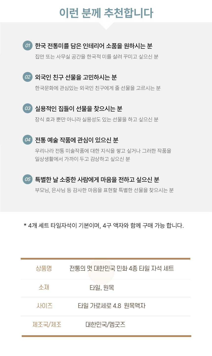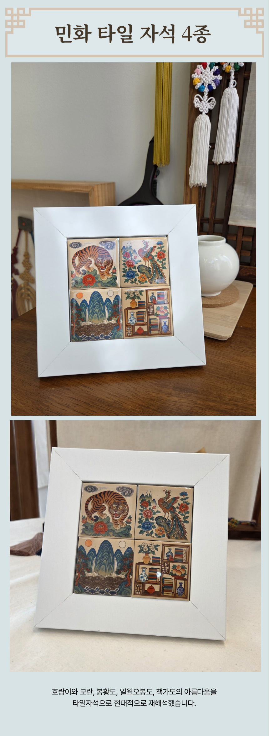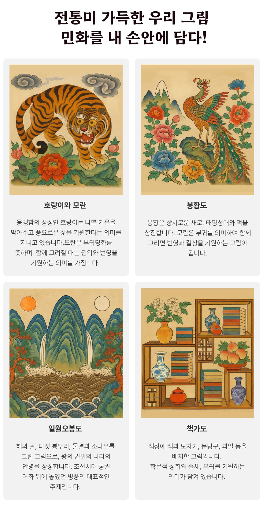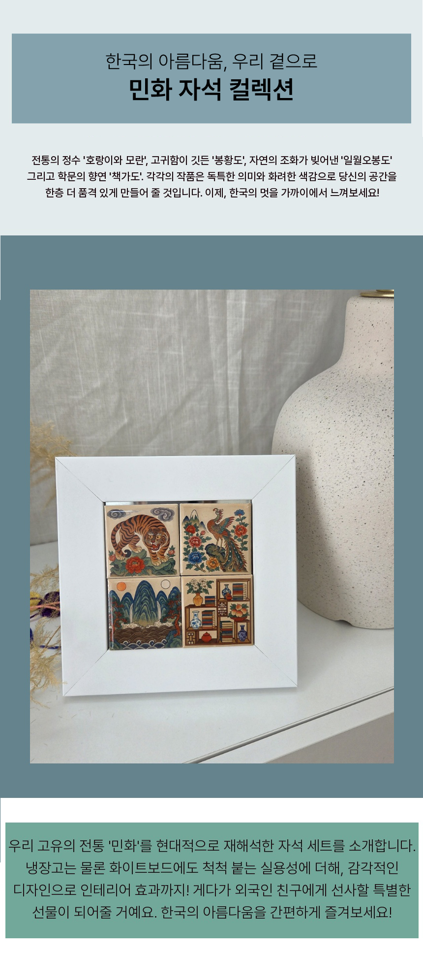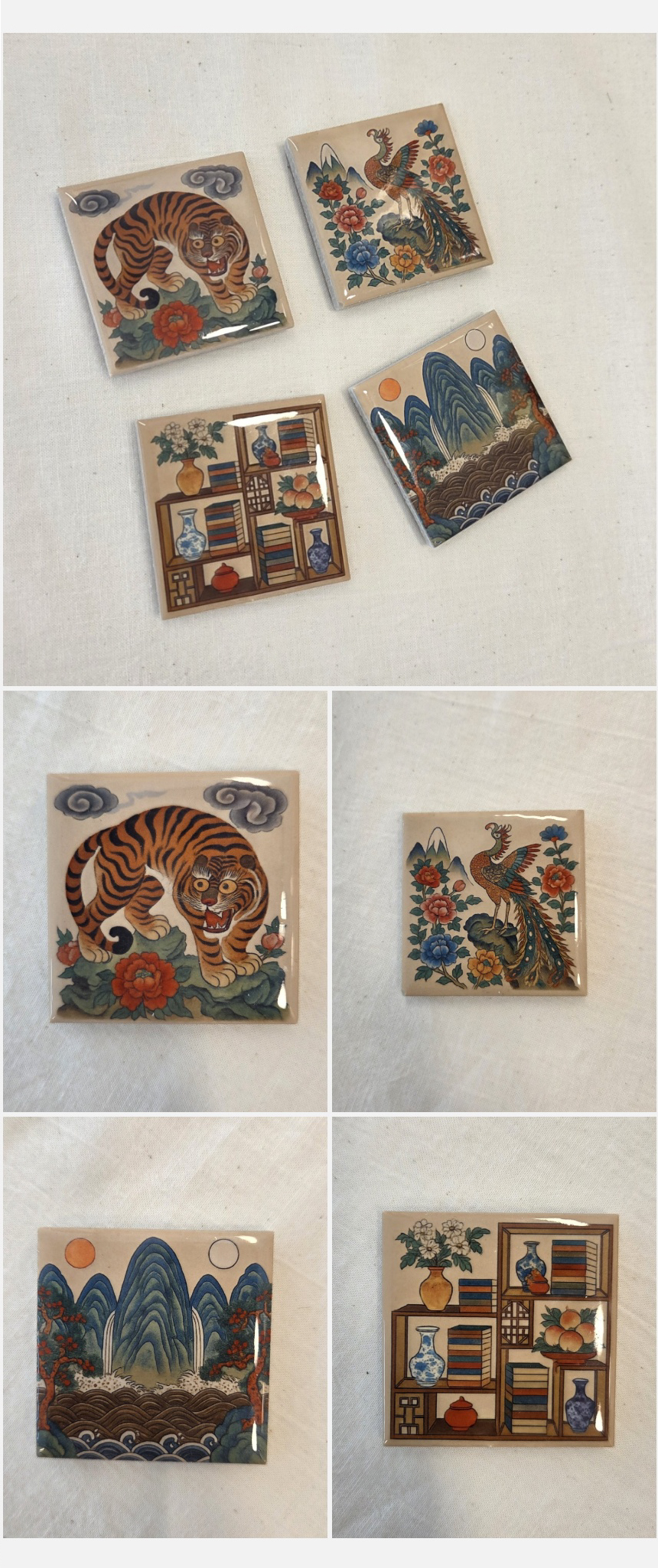 전통의 멋 대한민국 민화 4종 타일 자석 세트