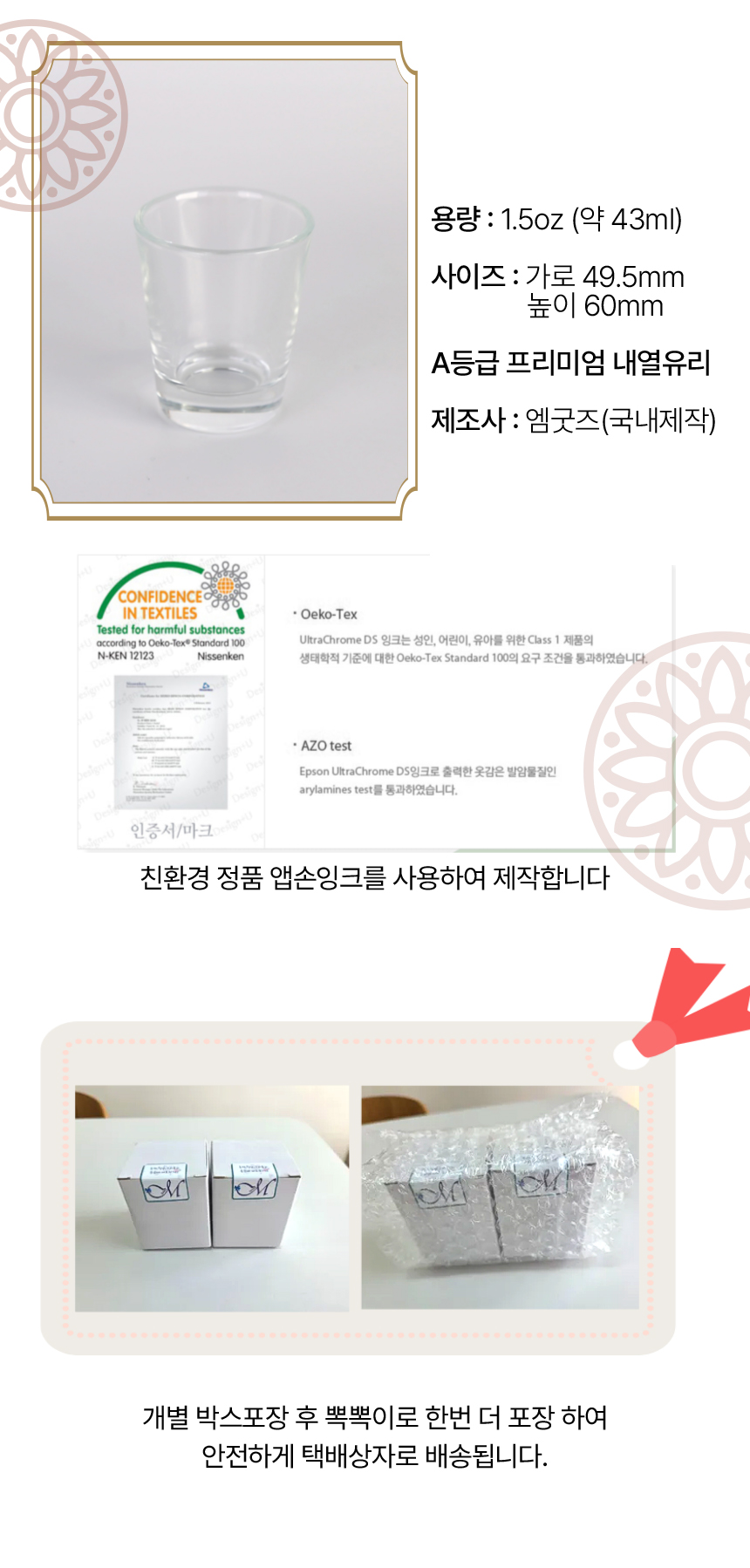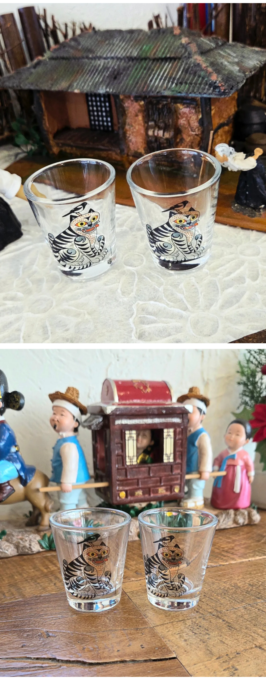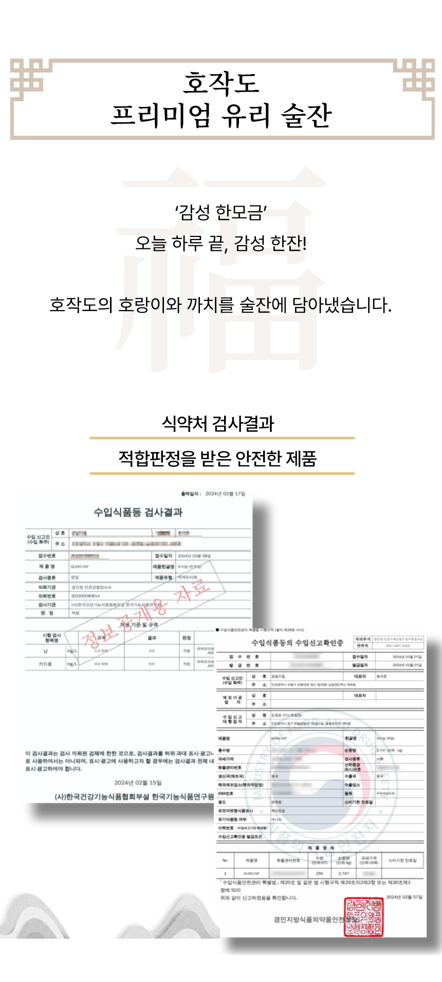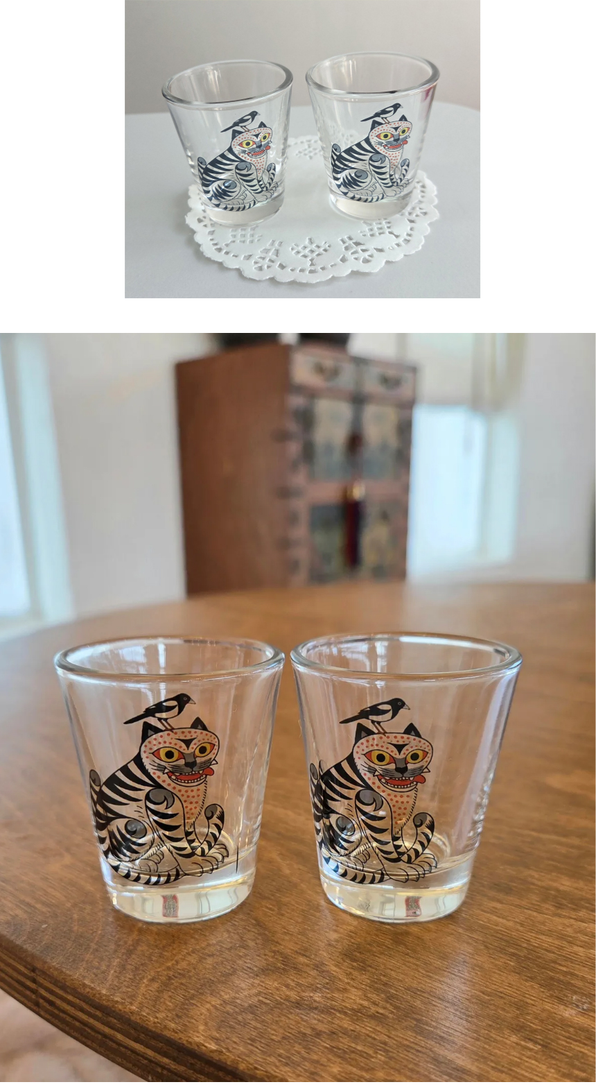 호작도 프리미엄 유리 술잔 헨드메이드 소주잔(2개 1세트)